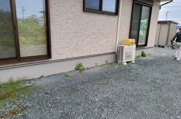 上の写真の所にパネル付きのテラス屋根&竿掛けとデッキを新設します(^^)
