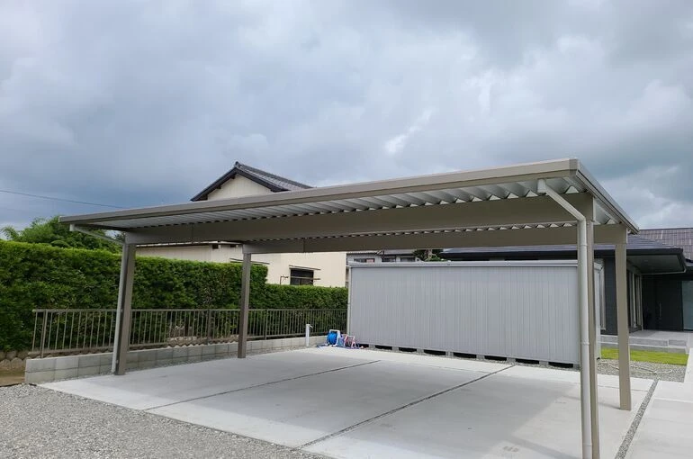 カーポートも風に負けない折板カーポート、G-1ssの3台用をチョイスしています(^^)