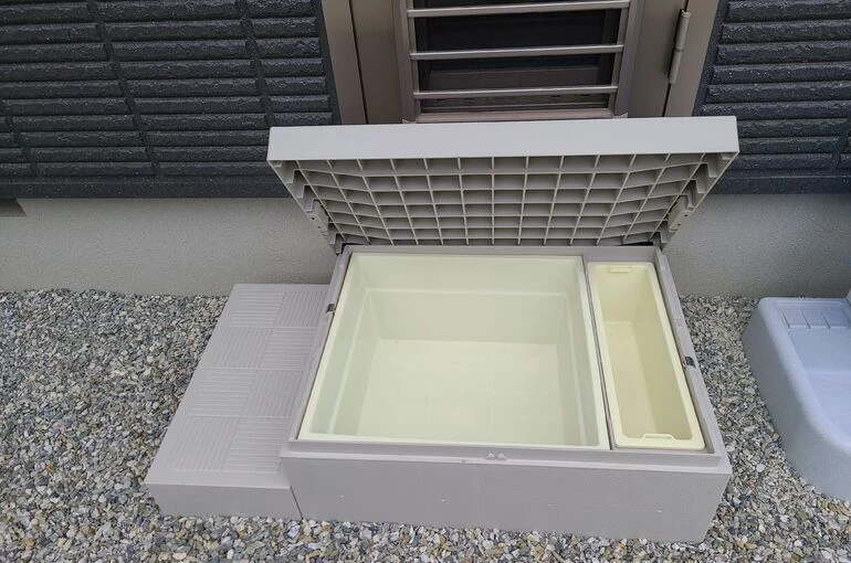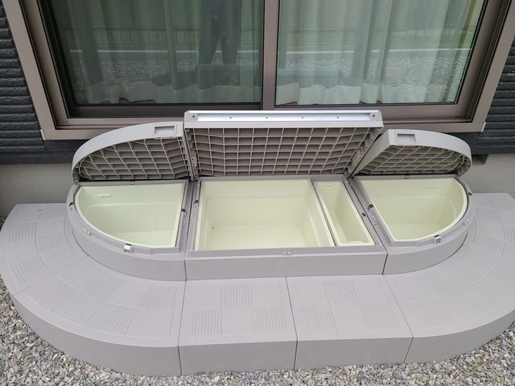 中が収納庫になっているので園芸用品や子供の遊び道具も入れられます。