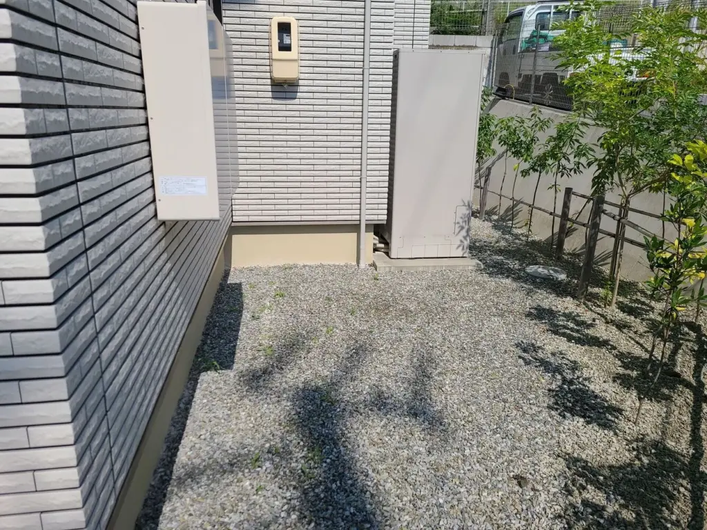 今回の工事では駐輪場(サイクルポート)の設置と駐車場コンクリートの増設、デッキ横に樹脂ハイタイプのフェンスの設置を行います!