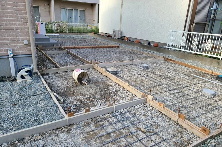 木枠の中にある網はワイヤーメッシュ筋と言って、コンクリートの割れを防止する役目を果たしてくれます!