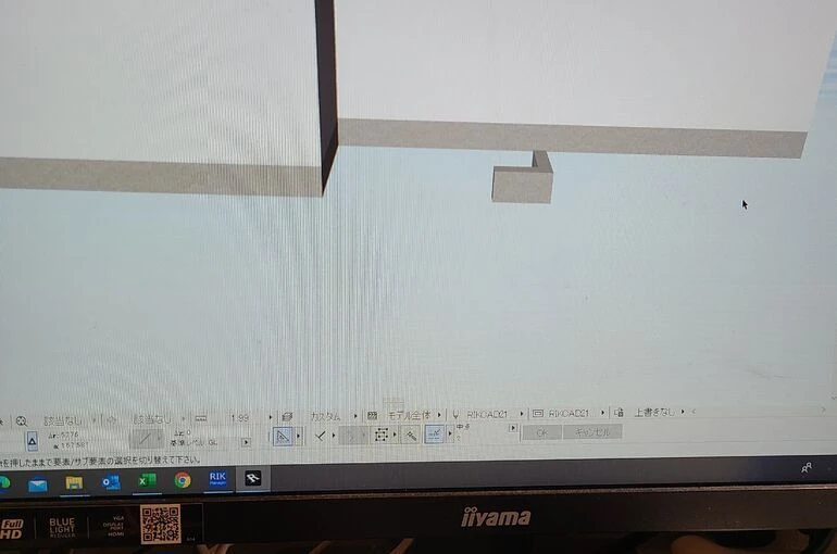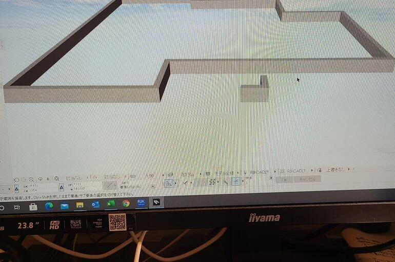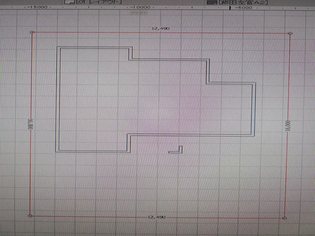 作図画面なので少し見づらいですがこの写真では境界の寸法を出して、基礎を書いています!