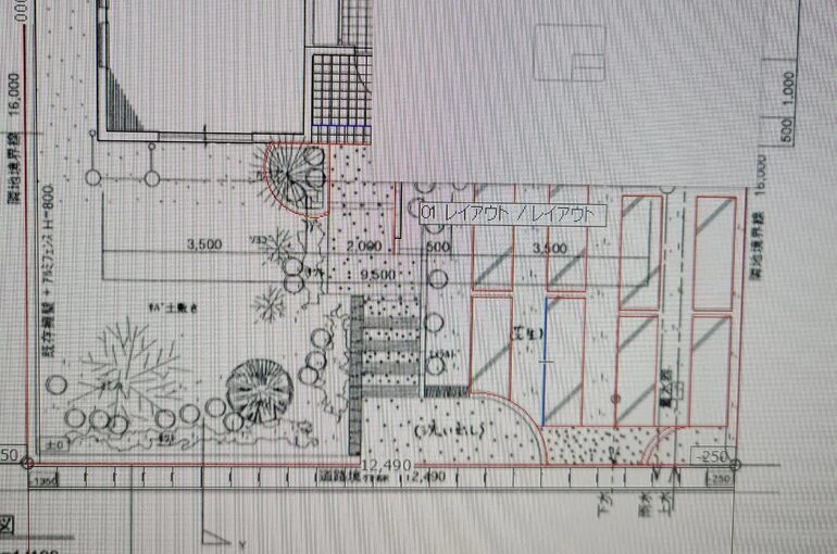 今日は昼は現場で作業して夜は先日お打ち合わせをしてきた外構案件の作図をしました!