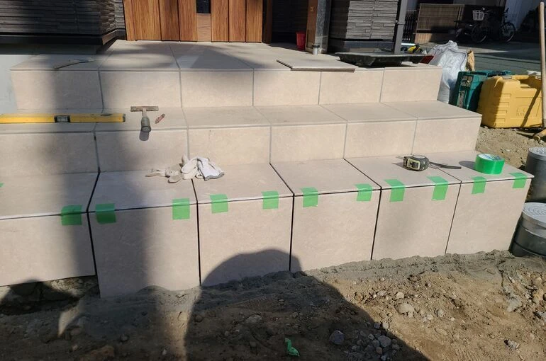 外構でもタイルで踊り場を作ったりするので、その際は最大限に気をつけて施工していきます。