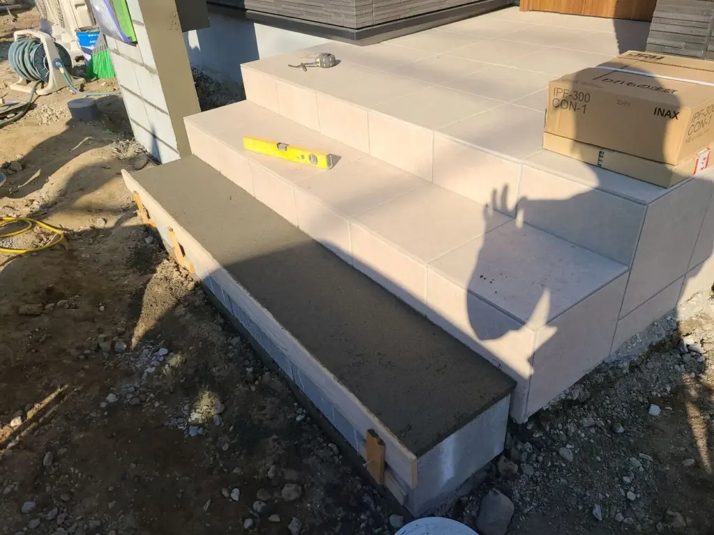 今日は浜松市中区で外構工事!タイル階段の追加工事です。