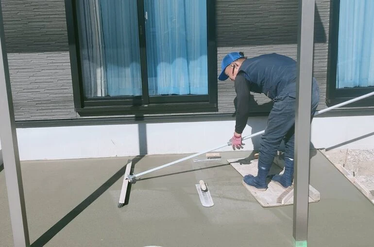 コンクリートが締まってきたら表面のムラをとって仕上げていきます!