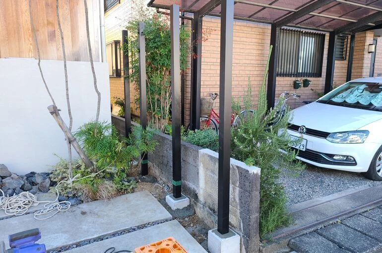 フェンスの柱を設置する部分が大分狭かったので大変でした😅💦