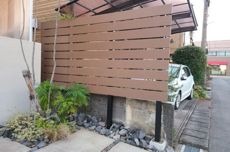 写真の場所に目隠しの樹脂製板張りフェンスを取り付けます!