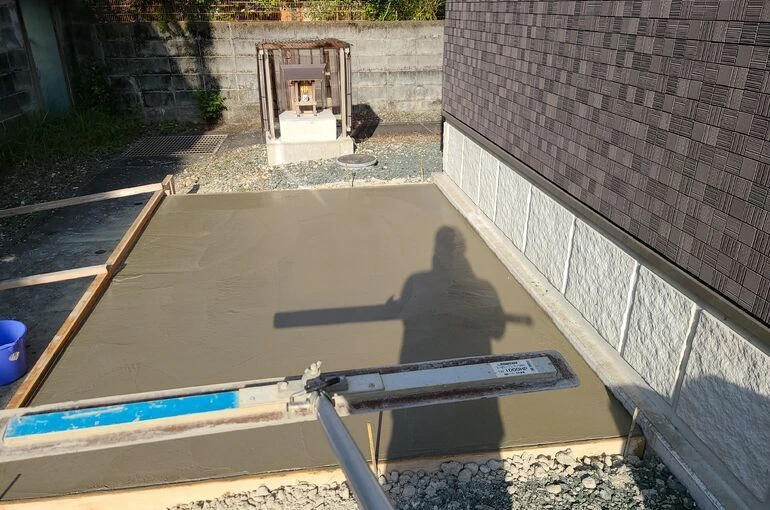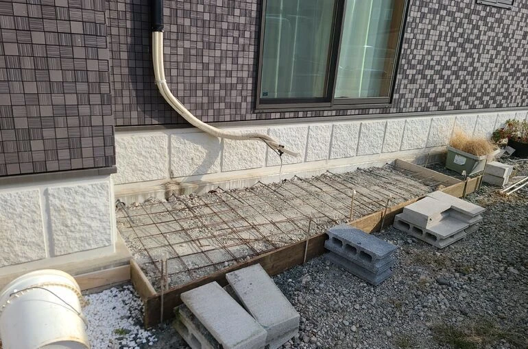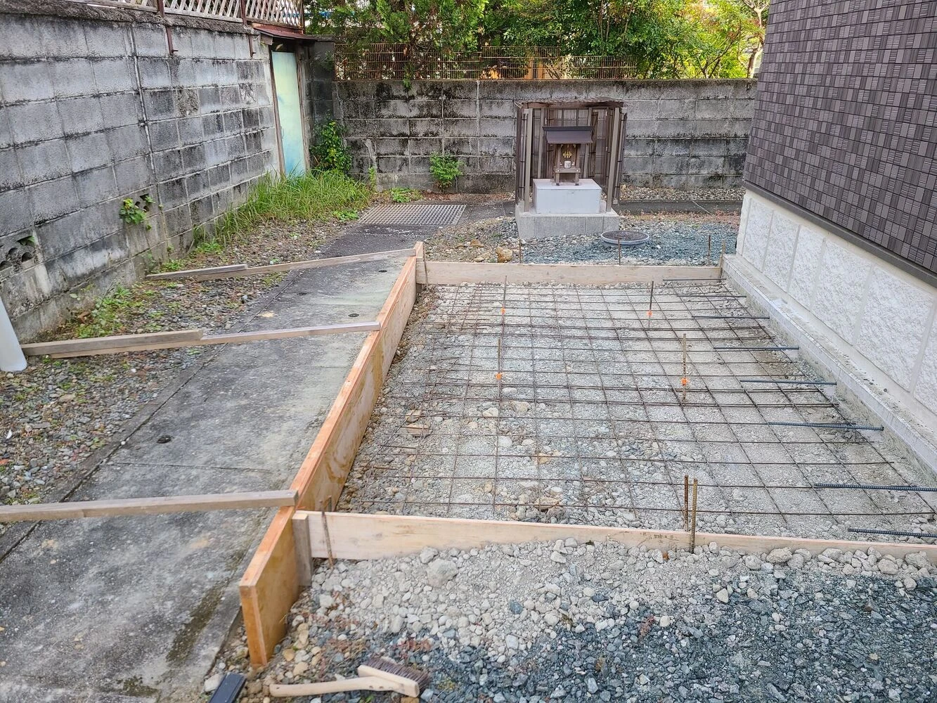 森町でリフォームの外構工事!ウッドデッキ下地、物置下地のコンクリート打設でした🔨