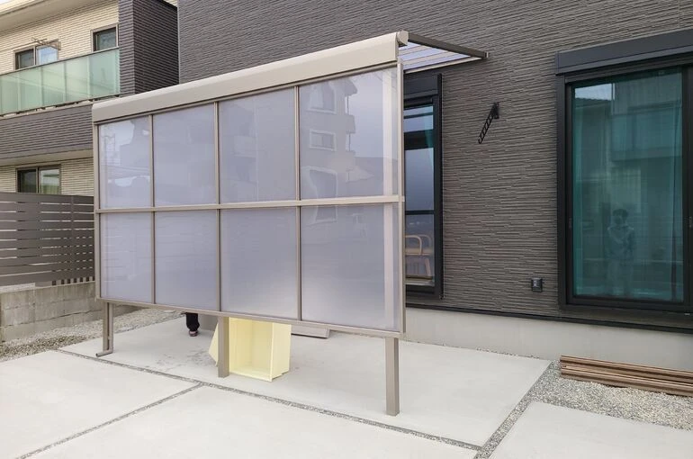 物干し場にはテラスを設置してパネルを張って雨が入らないようにしています!