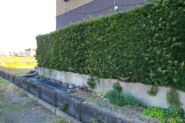 このお宅では伐採、抜根後に既存擁壁の上に化粧ブロックを積んでフェンスと門扉を取り付けます(^^)