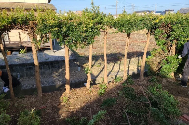 マキと呼ばれる垣根によく使われる樹木を伐採していきます!