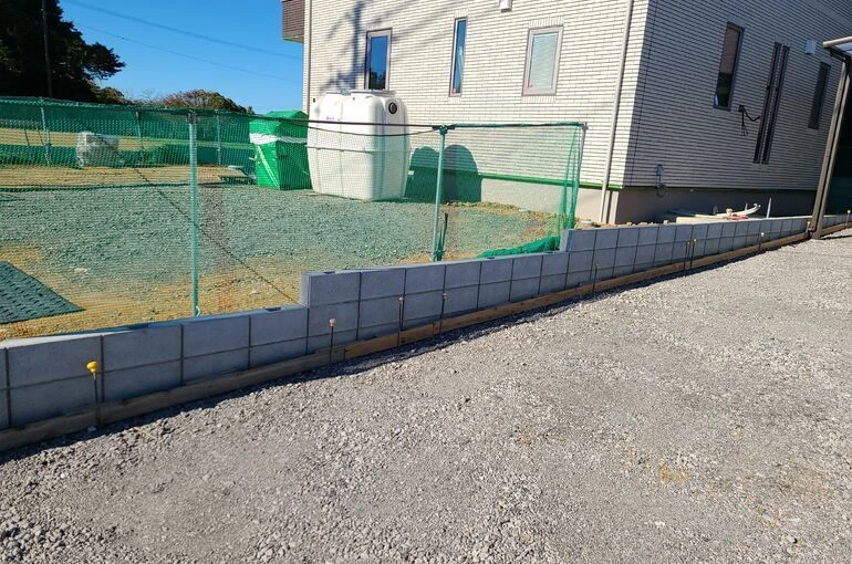 1期の外構工事で工事した境界ブロックの高さも隣地さんから見てもいい感じに仕上がっています(^^)