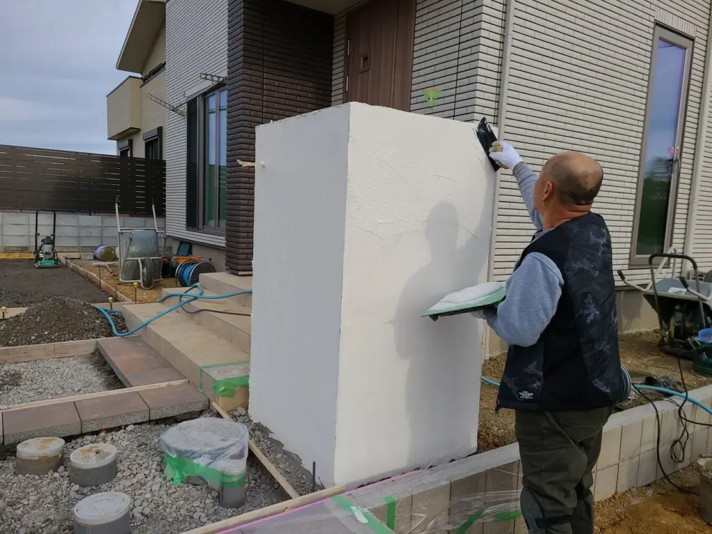 お施主様から『 郵便物を極力濡れずに取れるようになるべく玄関のすぐ近くに門袖が欲しい』とのご希望を伺いました(^^)