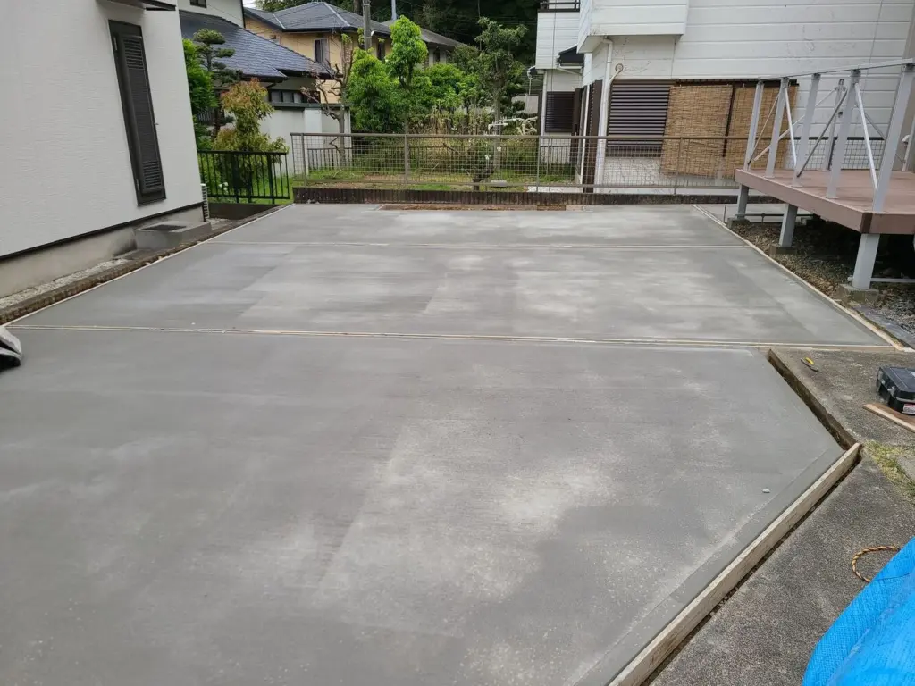 外構工事でポピュラーな土間コンクリートの場合、基本的にほとんどの部分が外気に触れていて型枠を入れるのはほんの一部になるのであまり脱型の日程は関係がありません。