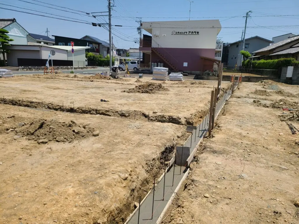ブロックの基礎となるL型ベースのコンクリートを打設しました(^^)