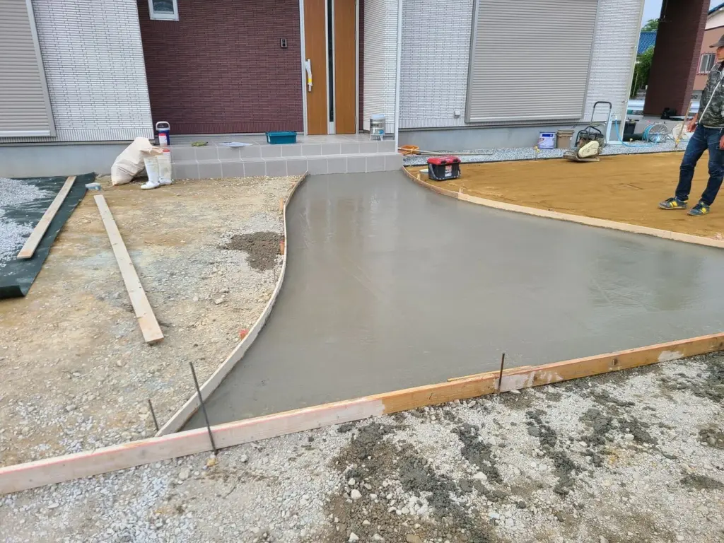 アプローチには下地コンクリートを施工して荷重がかかっても安心な施工をしています!
