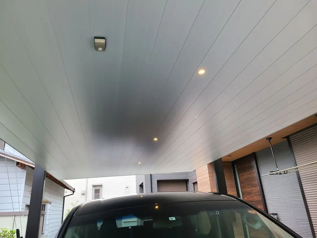 とってもオシャレなカーポートで、ダウンライトも付けるとラグジュアリーな仕上がりになります(^^)