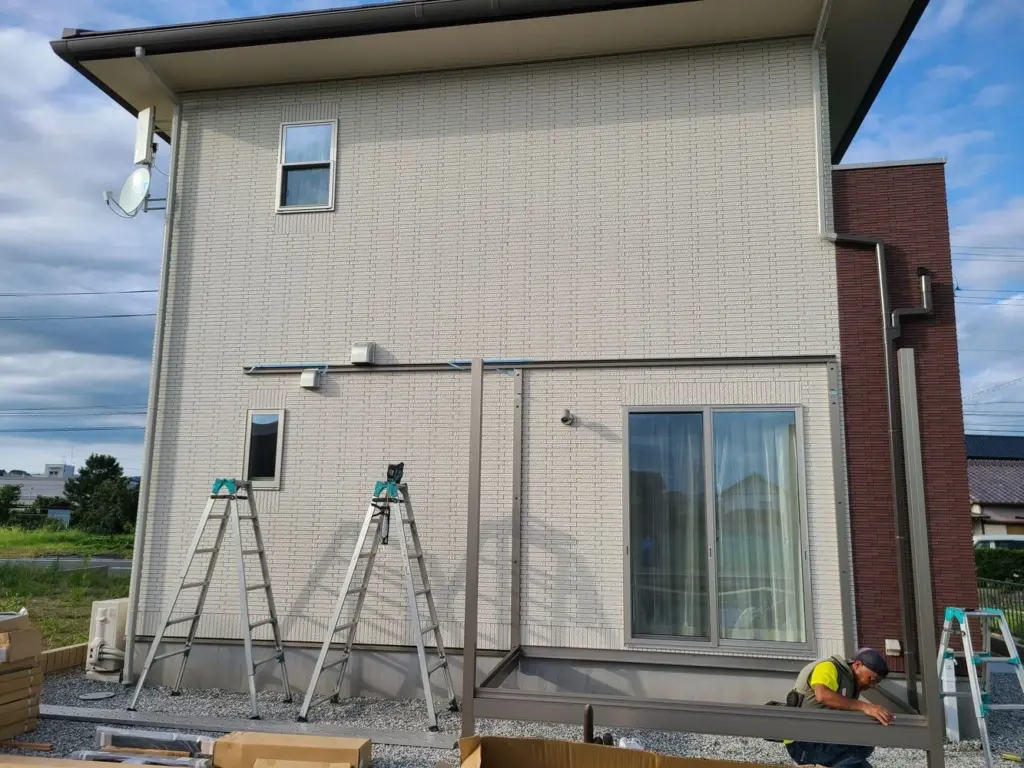 テラス連結収まりという少々特殊な収まりで、サンルームとテラスが一体になる商品です(^^)