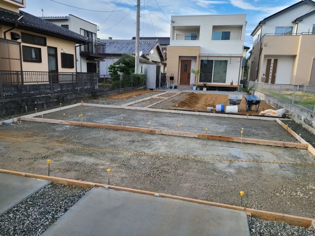 駐車場のコンクリートと人工芝の下地の工事です(^^)