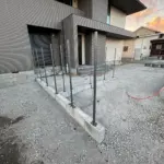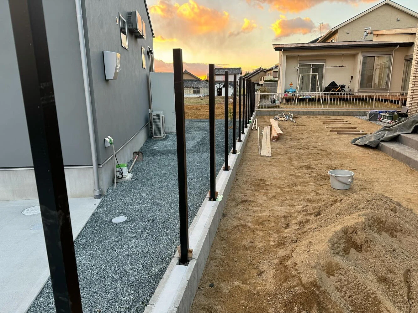 浜松市中央区湖東町にて発泡スチロール壁のジョイント部分にLアングル、家の裏側に板張りフェンスの柱を立てました‼️