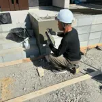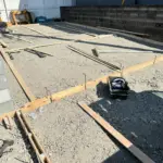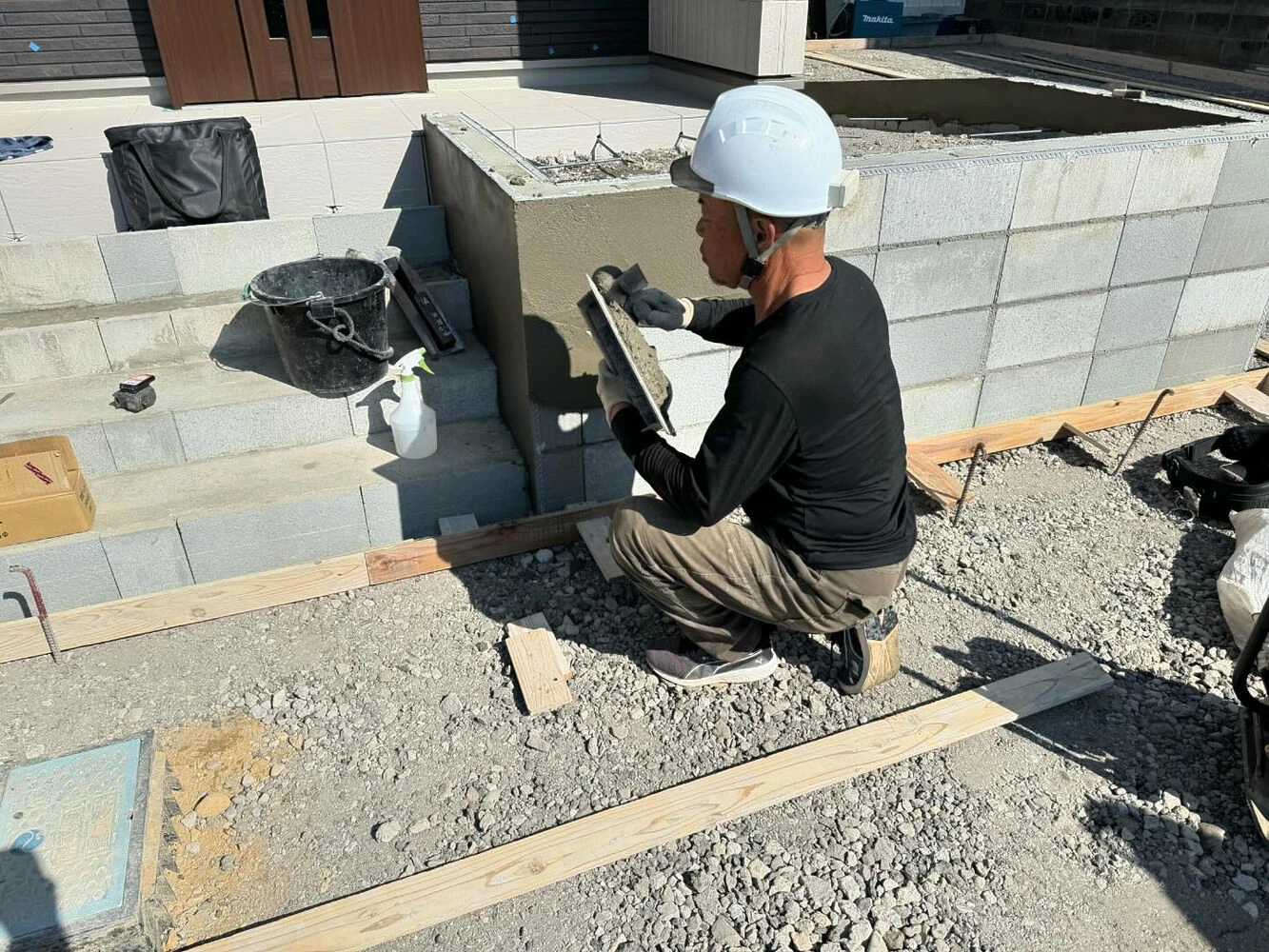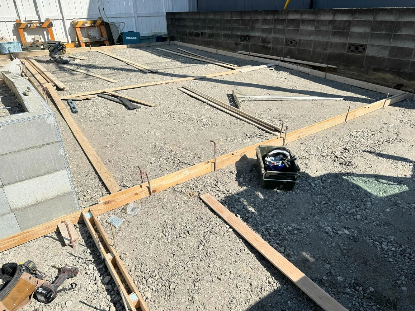 浜松市中央区上島町の現場ではコンクリート型組、スロープの下地塗りを行っております‼️