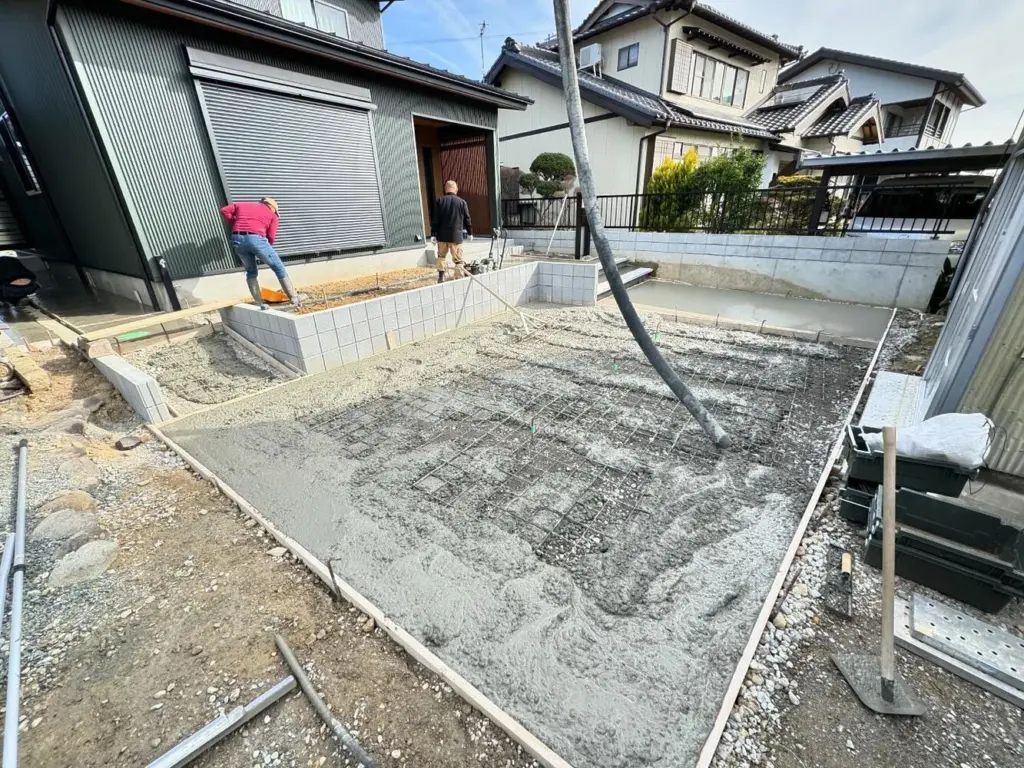 タイルの下地、駐車場、スロープ、犬走り部分を打設しました!