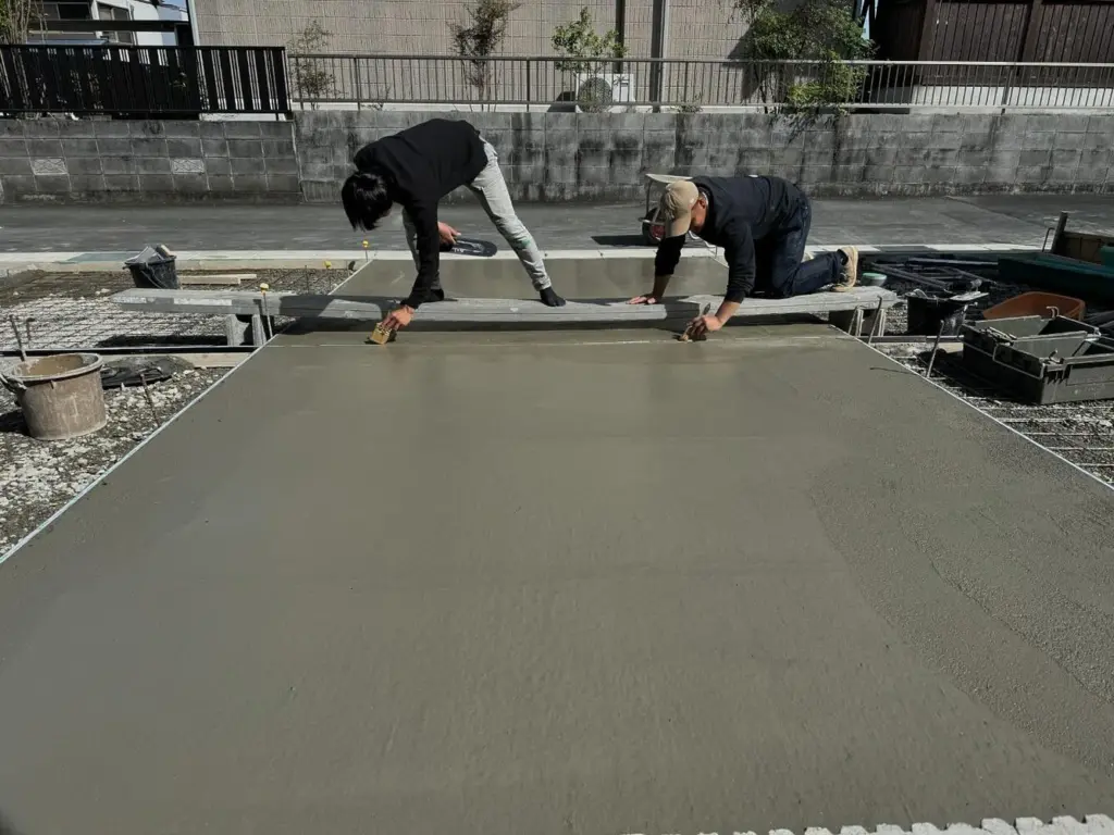 浜松市中央区有玉の現場では駐車場とガレージの中のコンクリート打設を行いました‼️