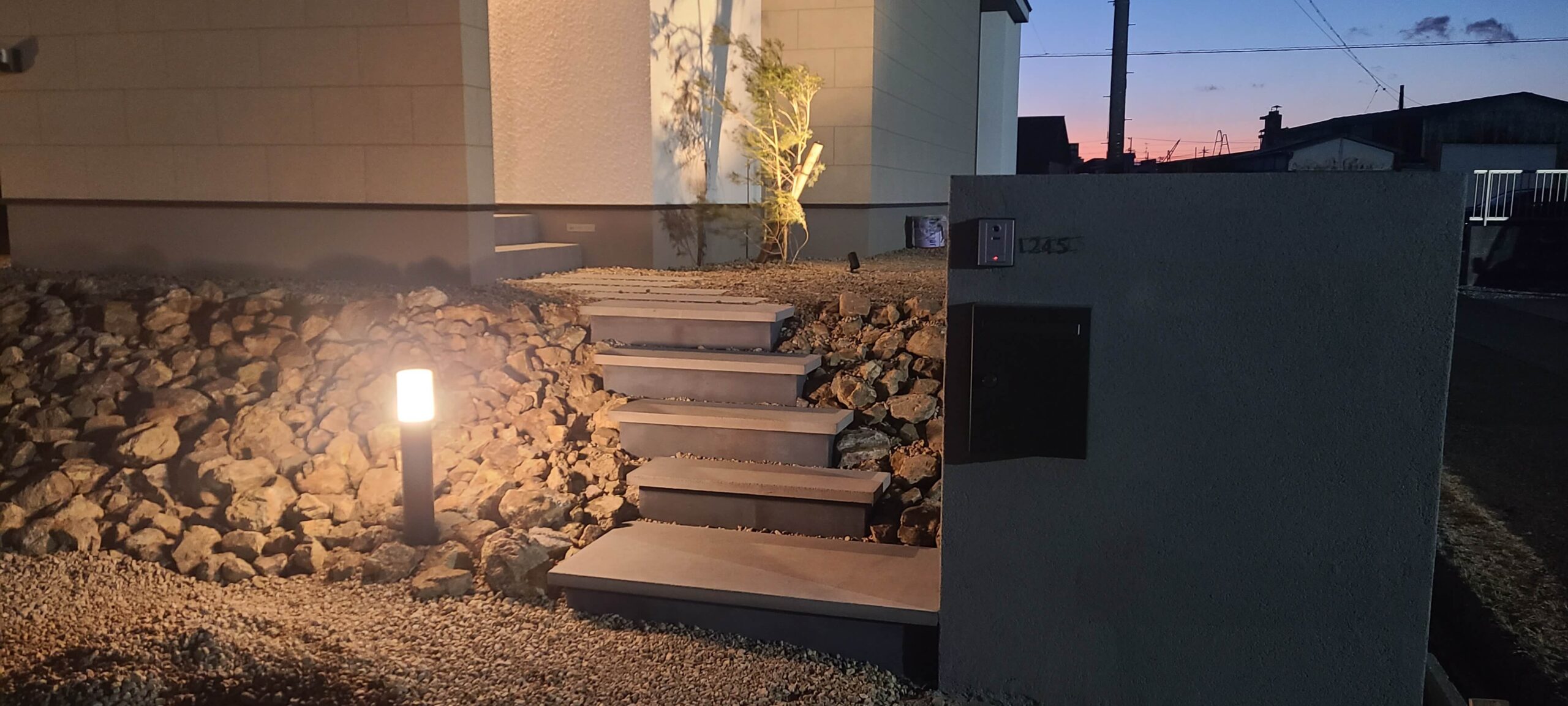 蹴込みの部分は黒モルタルでバシッと仕上げて使いやすく人目につくアプローチになりました。