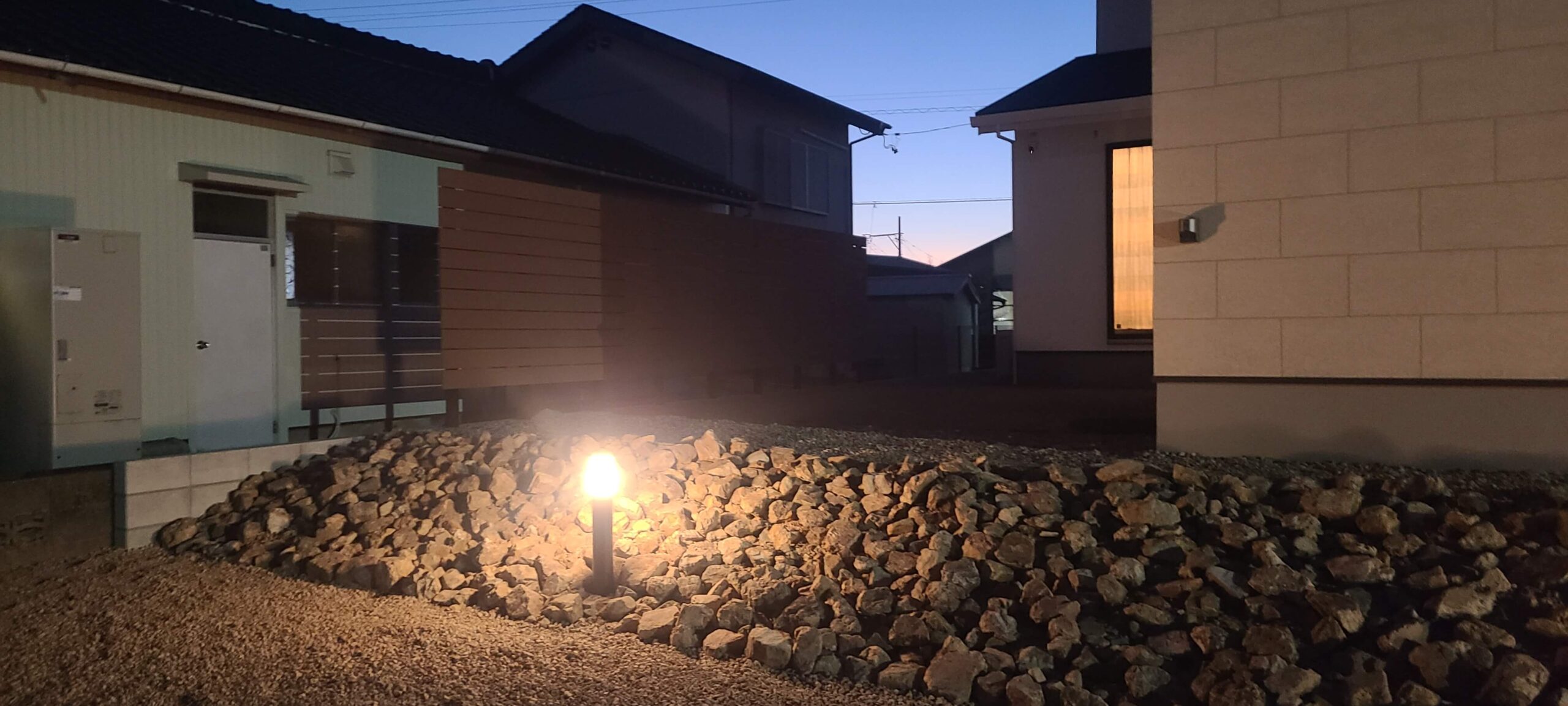 高低差があるお宅で、擁壁工事をする前に家が建ってしまっていたため、今回は石積み法面を採用しました。