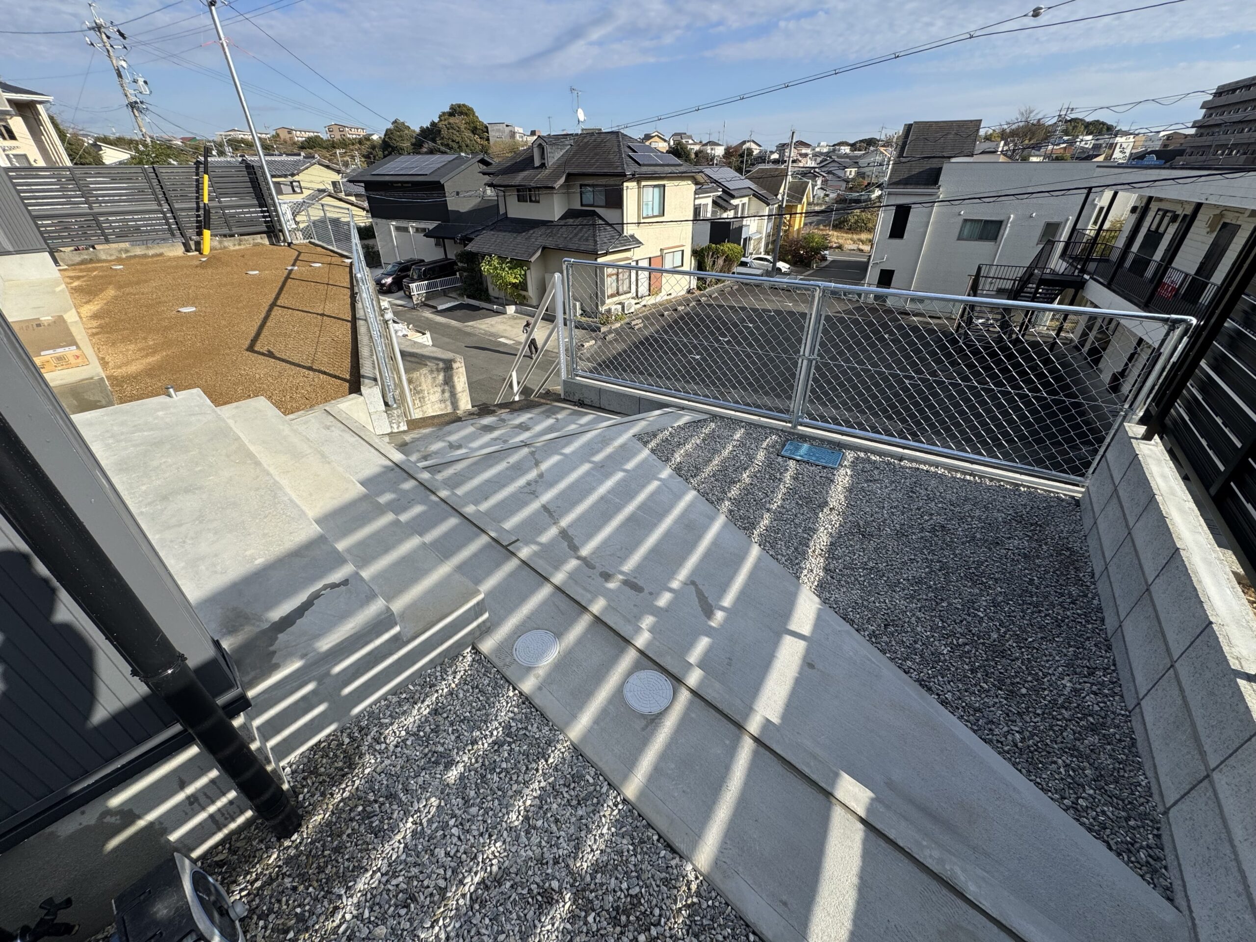カリフォルニア風住宅を得意とする工務店様で新築されたお客様で、とにかくPCフェンスを施工したい!とのことで採用いたしました。住宅正面の一番見た目に拘りたい部分にはPCフェンス、敷地西側の目隠しを必要とする部分にはブロック上にYK3型H1200を施工、隣地との境界部分にはH1600のレジリアの多段仕様を施工しました。”